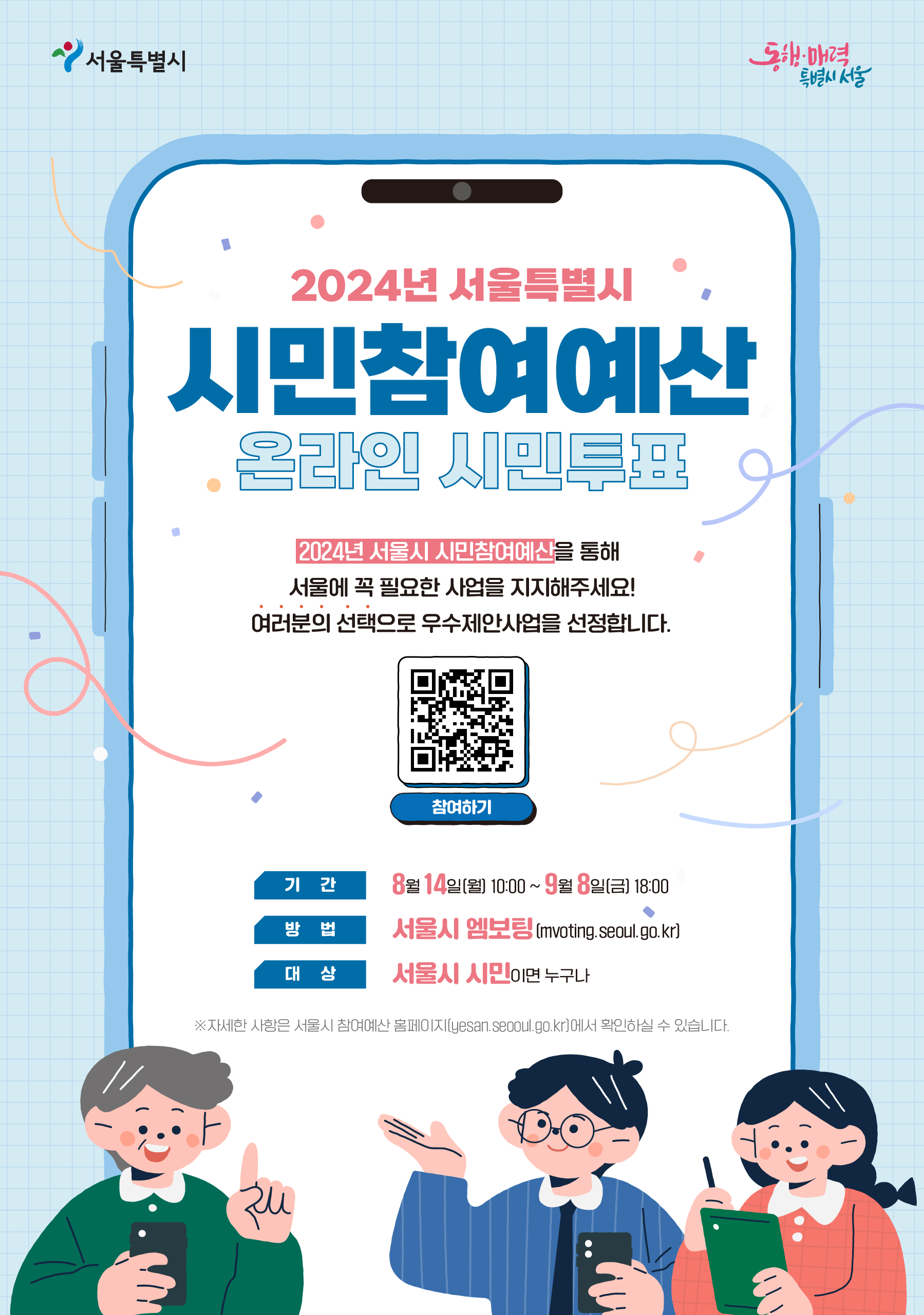 ※ 자세한 사항은 서울시 참여예산 홈페이지(yesan.seoul.go.kr)에서 확인하실 수 있습니다.