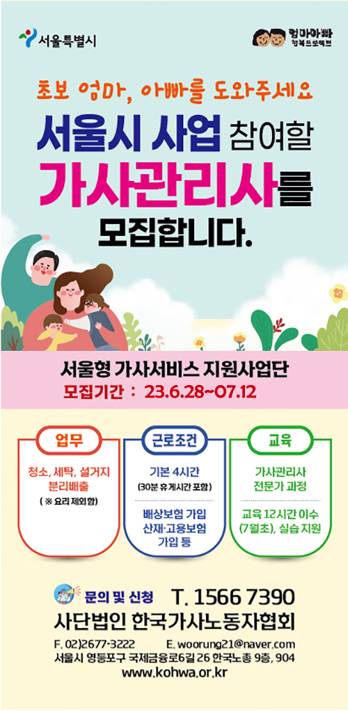 서울형 가사서비스 지원사업 가사관리사 모집