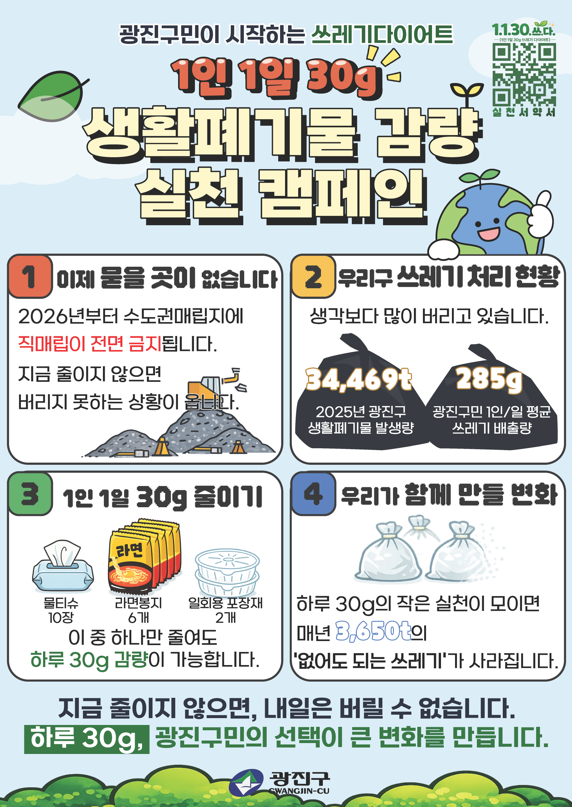 광진구민이 시작하는 「1인 1일 30g」 쓰레기 다이어트 캠페인 안내