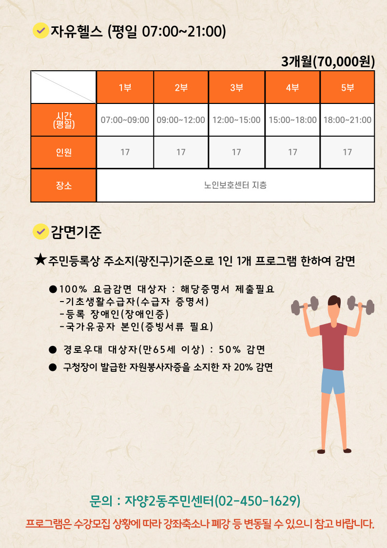 ★ 헬스장과 그 외 프로그램의 접수 시작일이 다르니 주의 바랍니다~!!