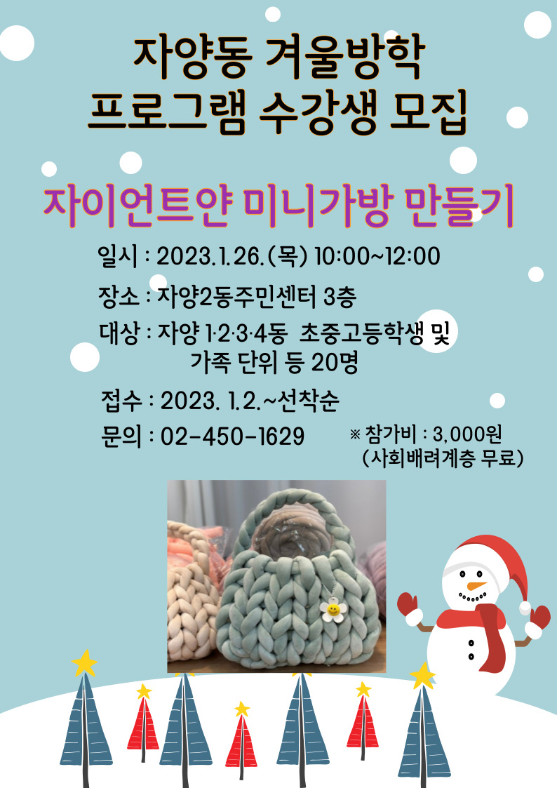 2023년 자양2동 겨울방학 특화 프로그램 안내