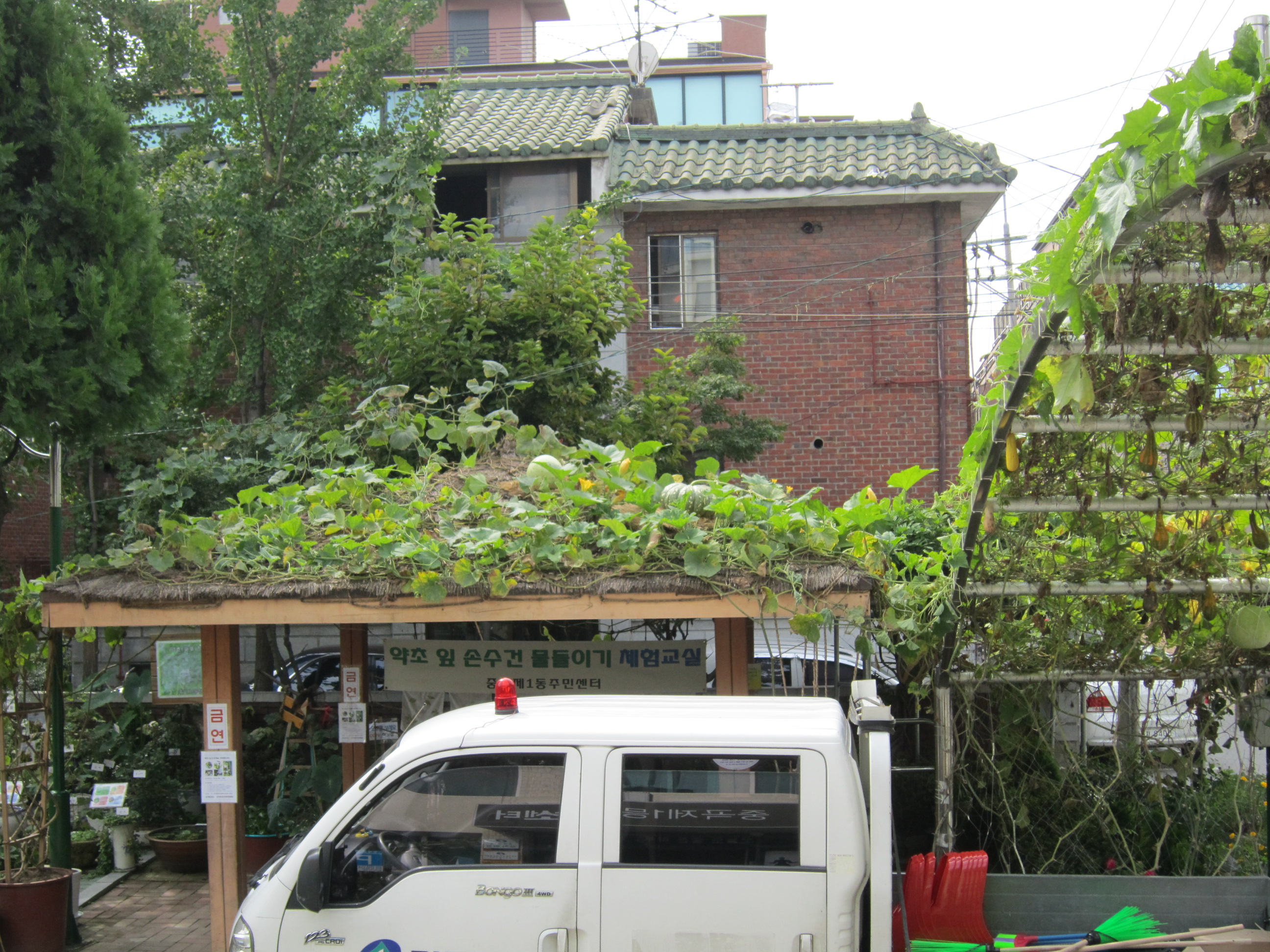 10.1 주민센터 초가지붕위에 잘 익어가는 박들...