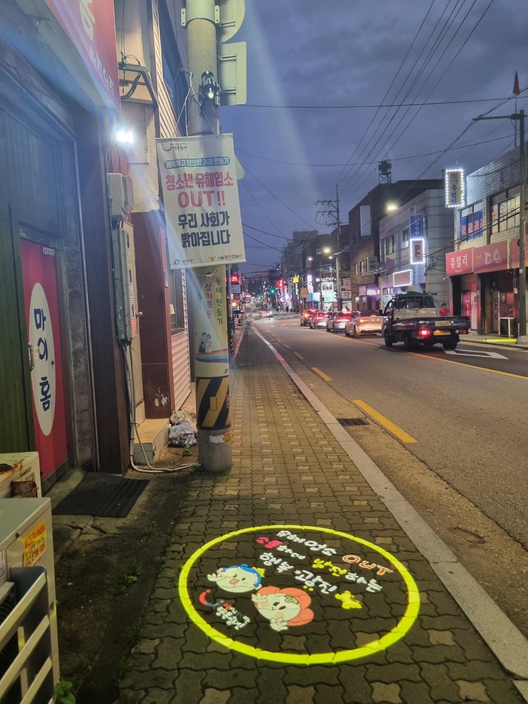 면목로 카페거리 로고젝터 설치