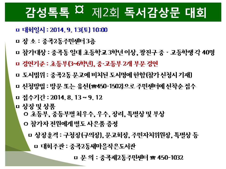 제2회 독서감상문대회 안내