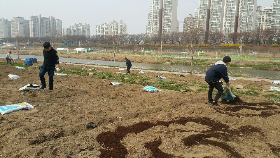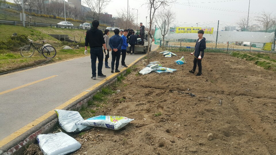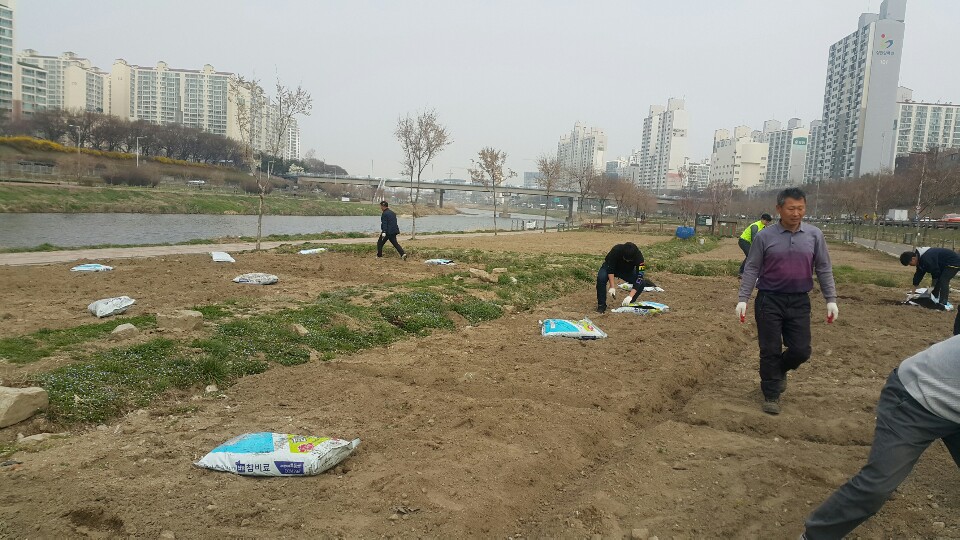 중랑천 텃밭에 비료 살포했습니다.(3월 27일)