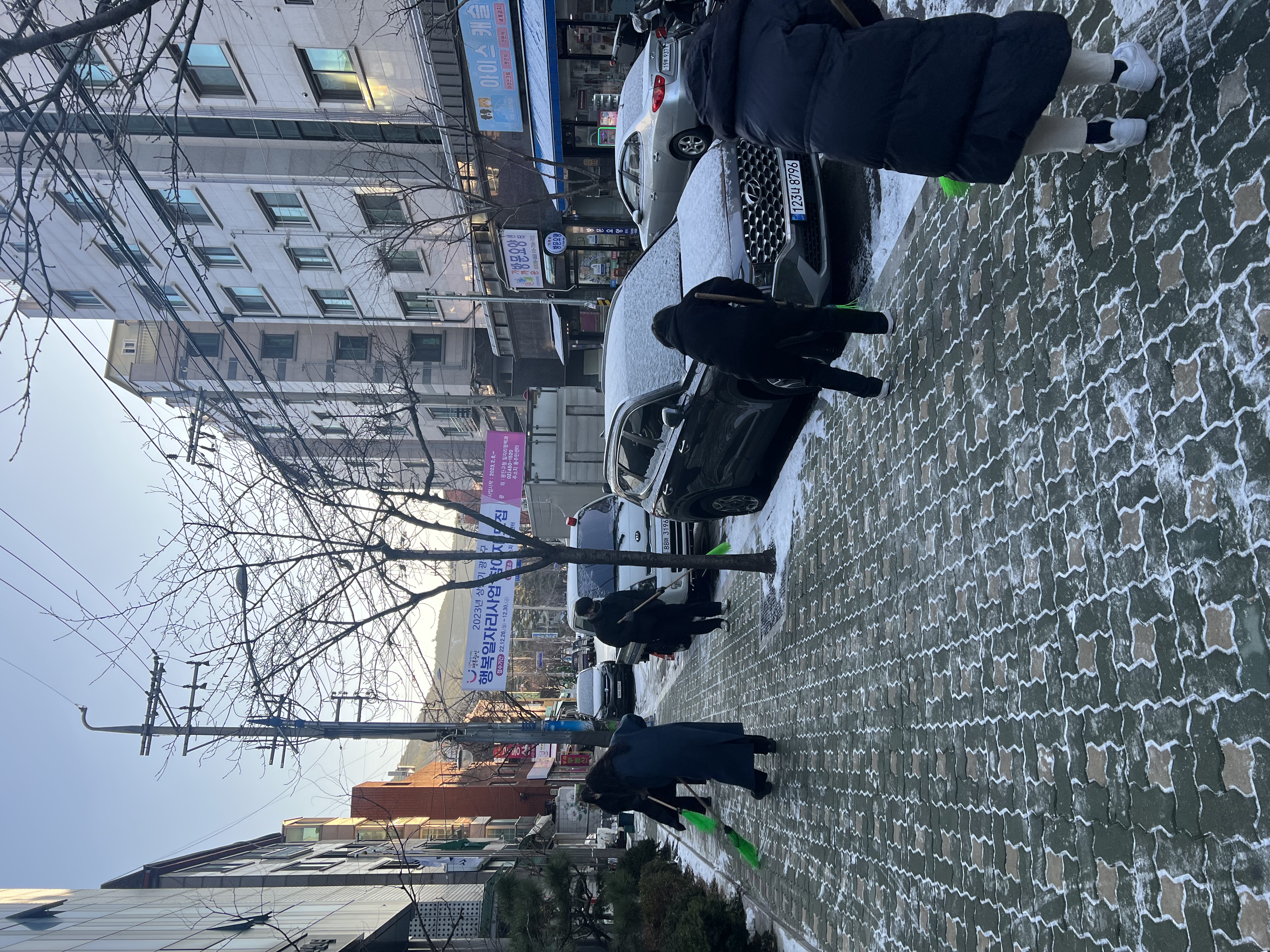 강설에 따른 주민센터 앞 제설작업