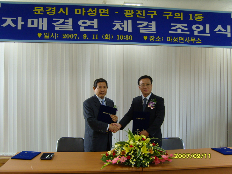 문경시 마성면- 구의1동 자매결연 체결 조인식 장면