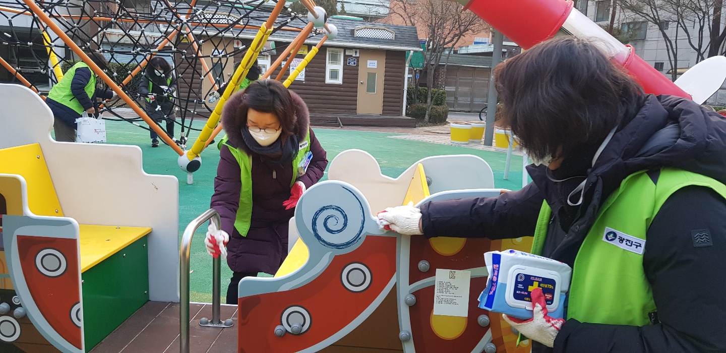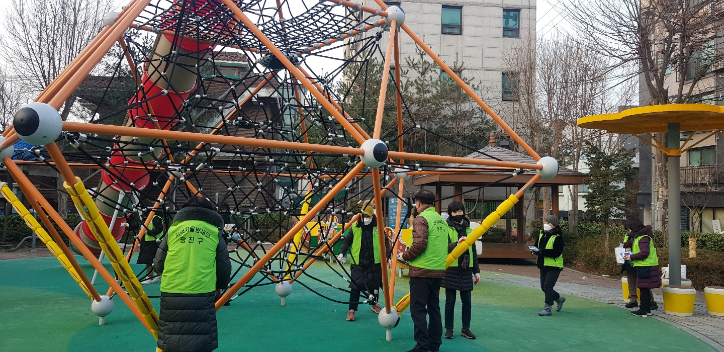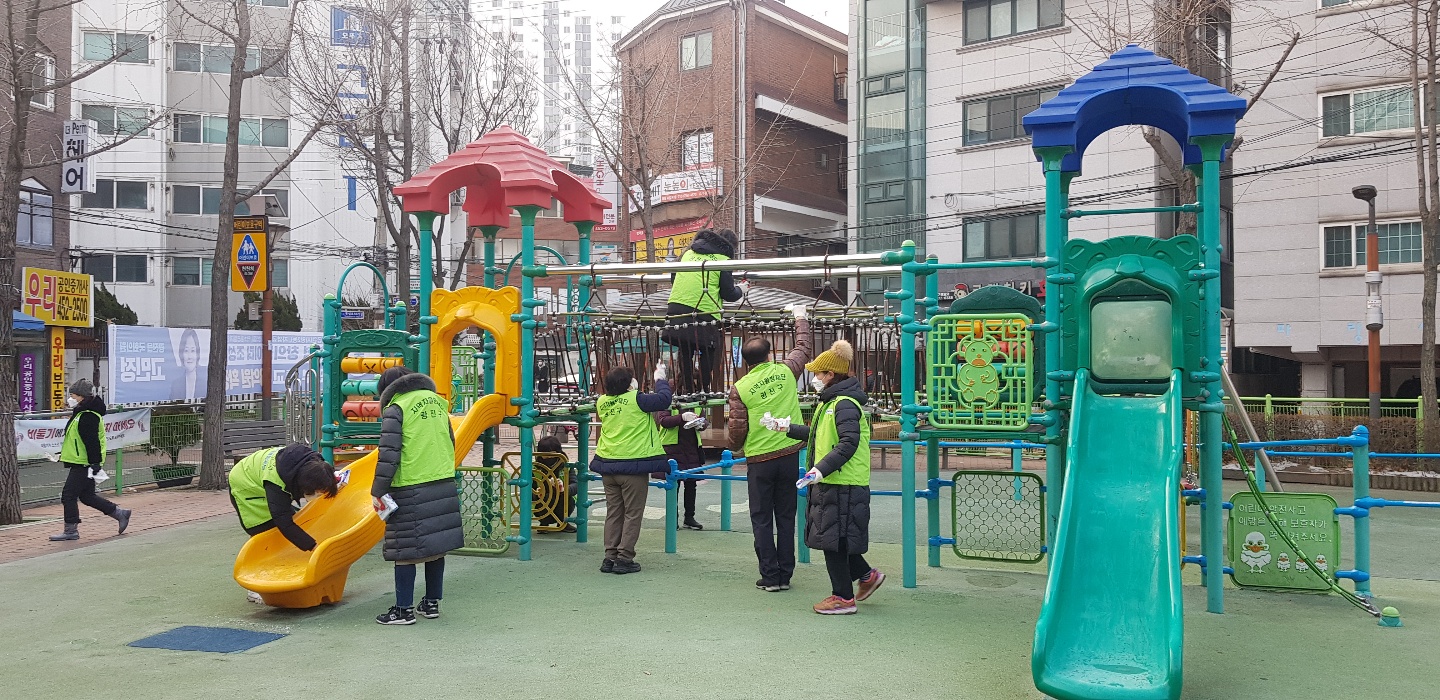 설 연휴 대비 직원과 주민 일제 대청소 및 자율방재단 어린이공원 소독 실시