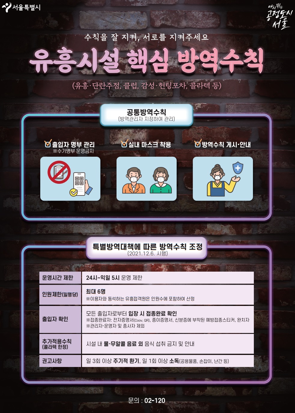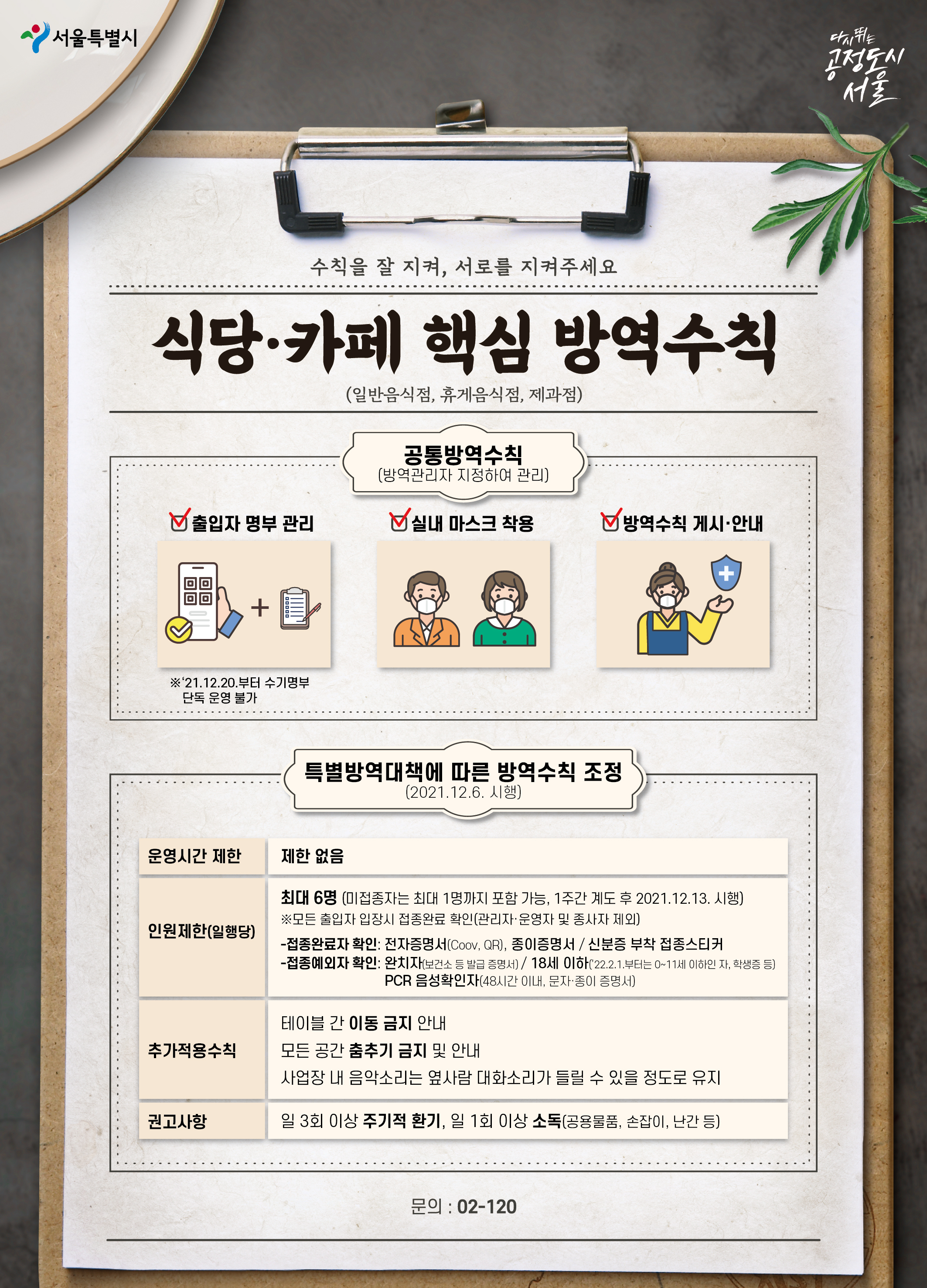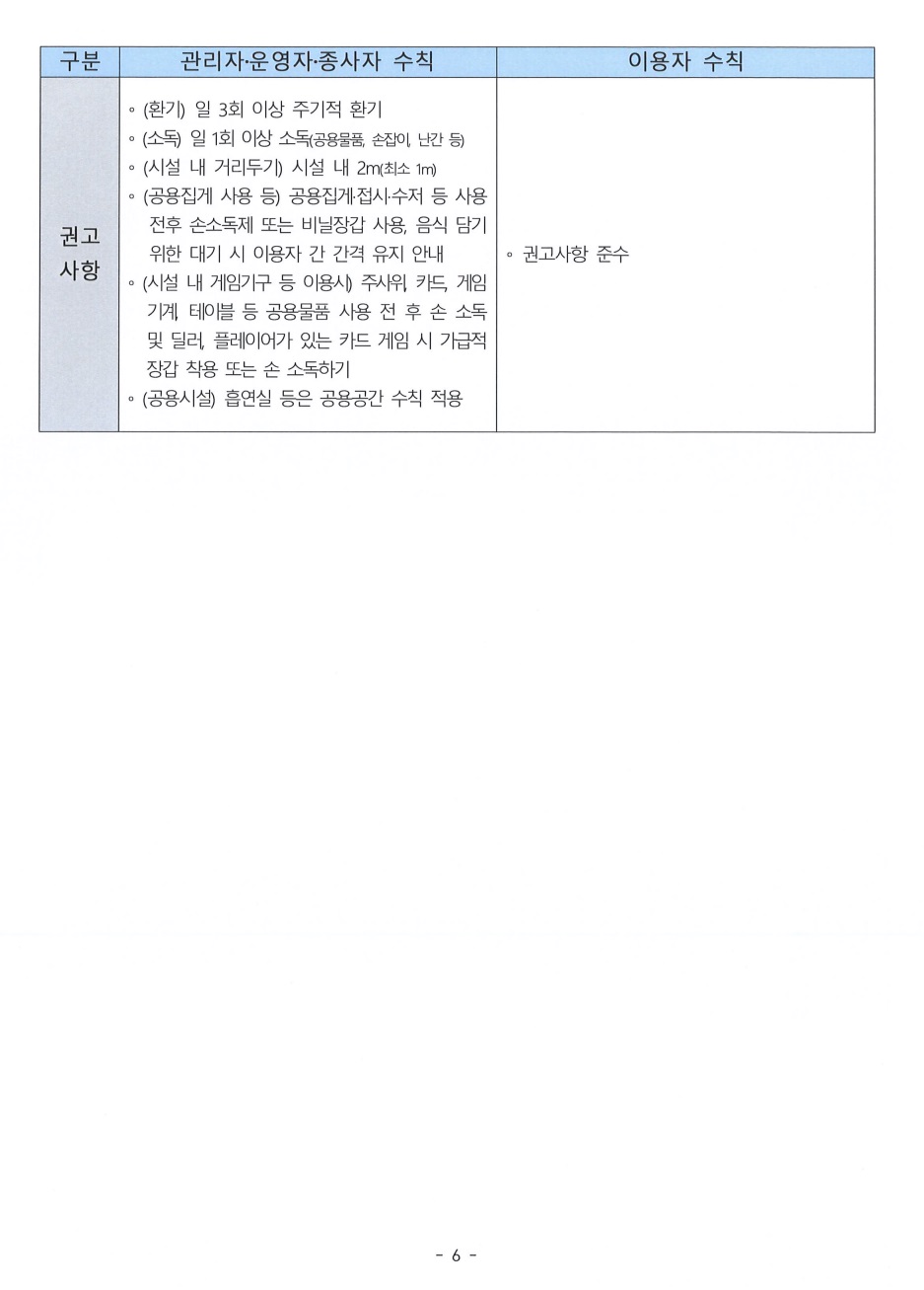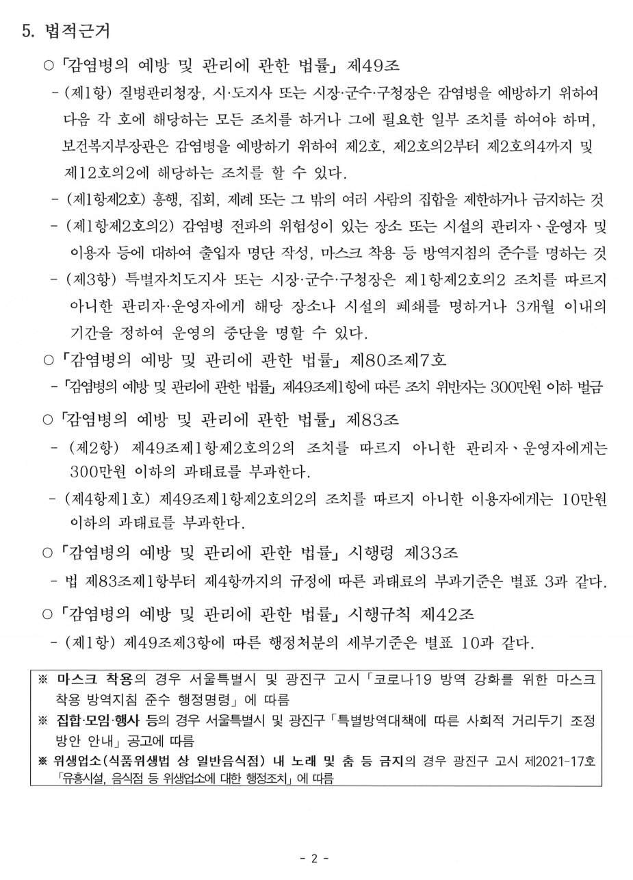특별방역대책에 따른 사회적 거리두기 조정 유흥시설 및 음식점 등 방역조치 고시