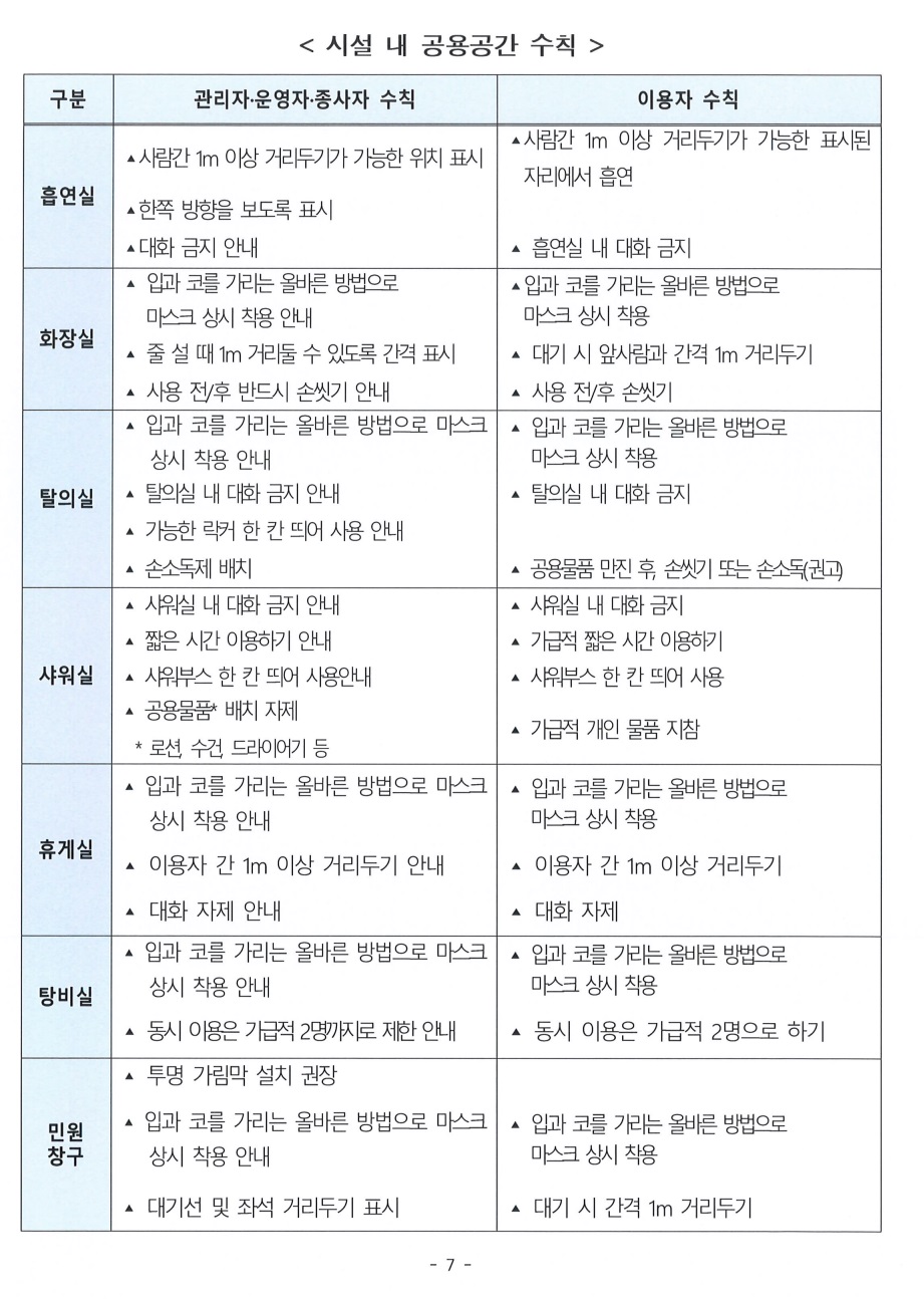 특별방역대책 시행에 따른 목욕장업 방역조치 고시