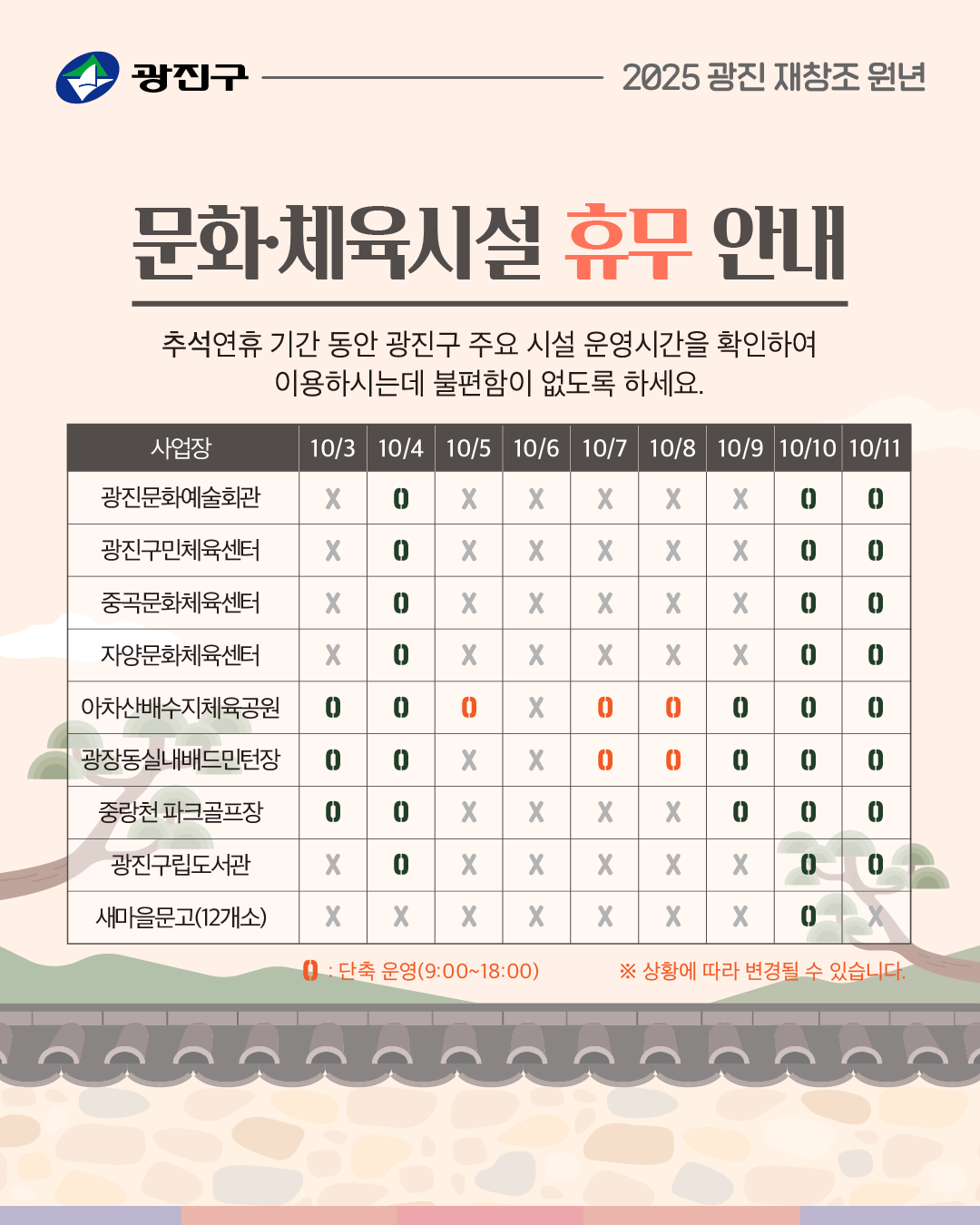 2025년 추석 연휴기간문화체육시설 휴무