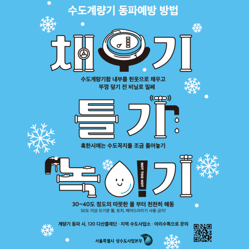 겨울철 수도계량기 동파 예방, 채우기 틀기 녹이기!