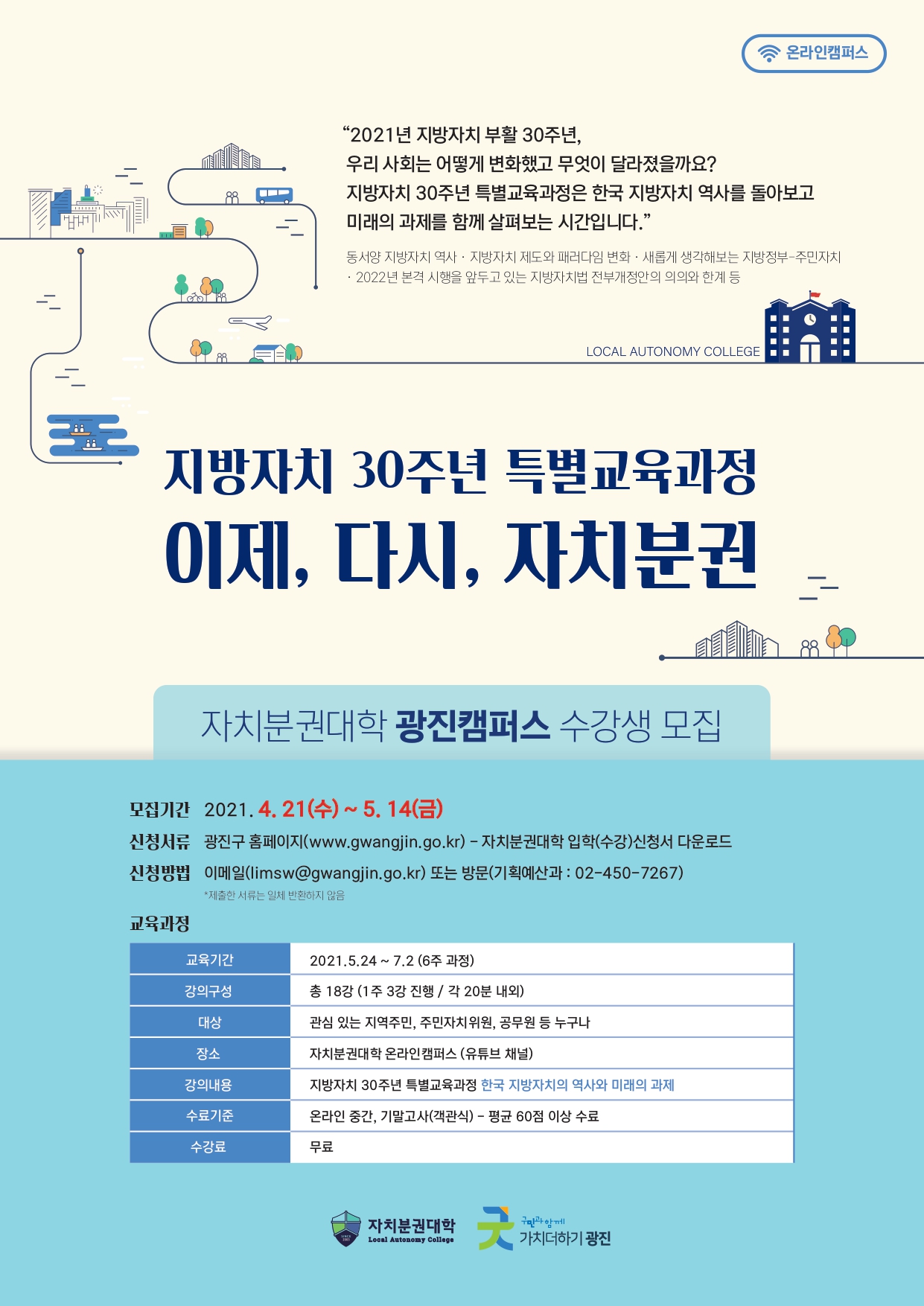 자치분권대학 광진캠퍼스 수강생 모집