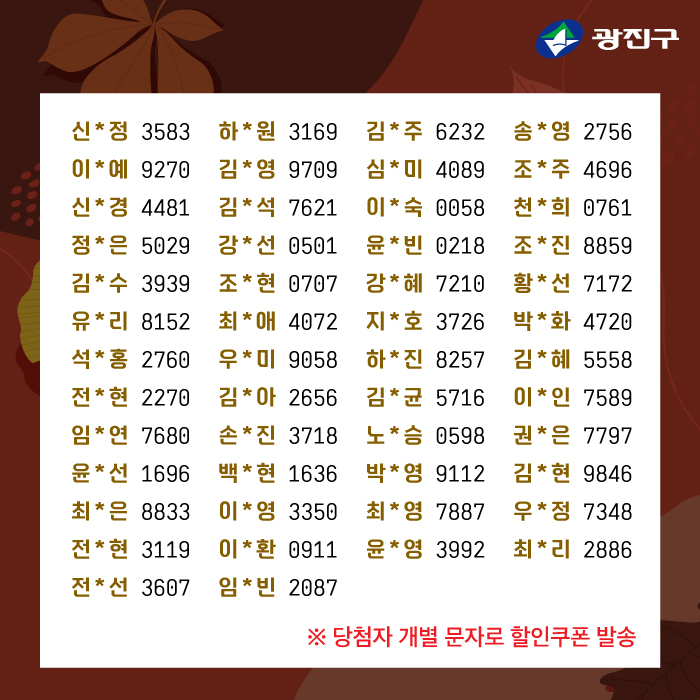 광진땡겨요 할인쿠폰(3천원) 이벤트 당첨자 발표