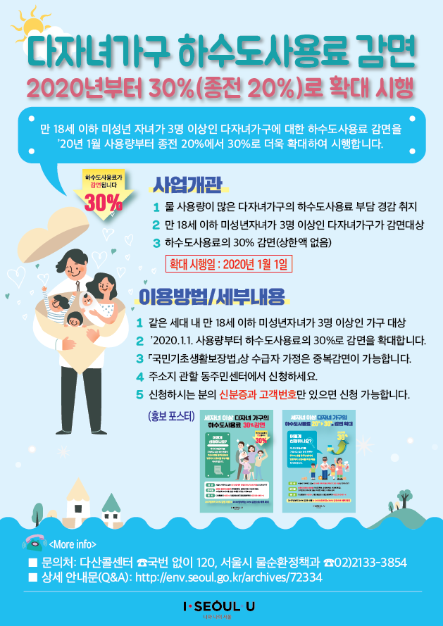 ★세자녀 이상 다자녀가구 하수도사용료 감면사업★