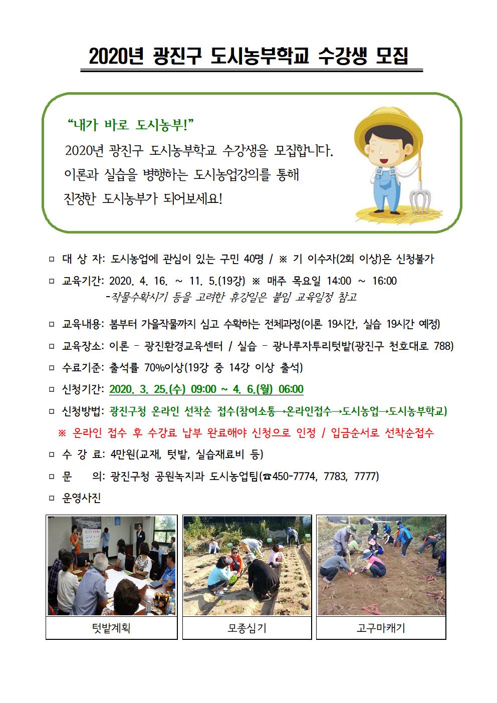 2020년 광진구 도시농부학교 프로그램 운영계획.