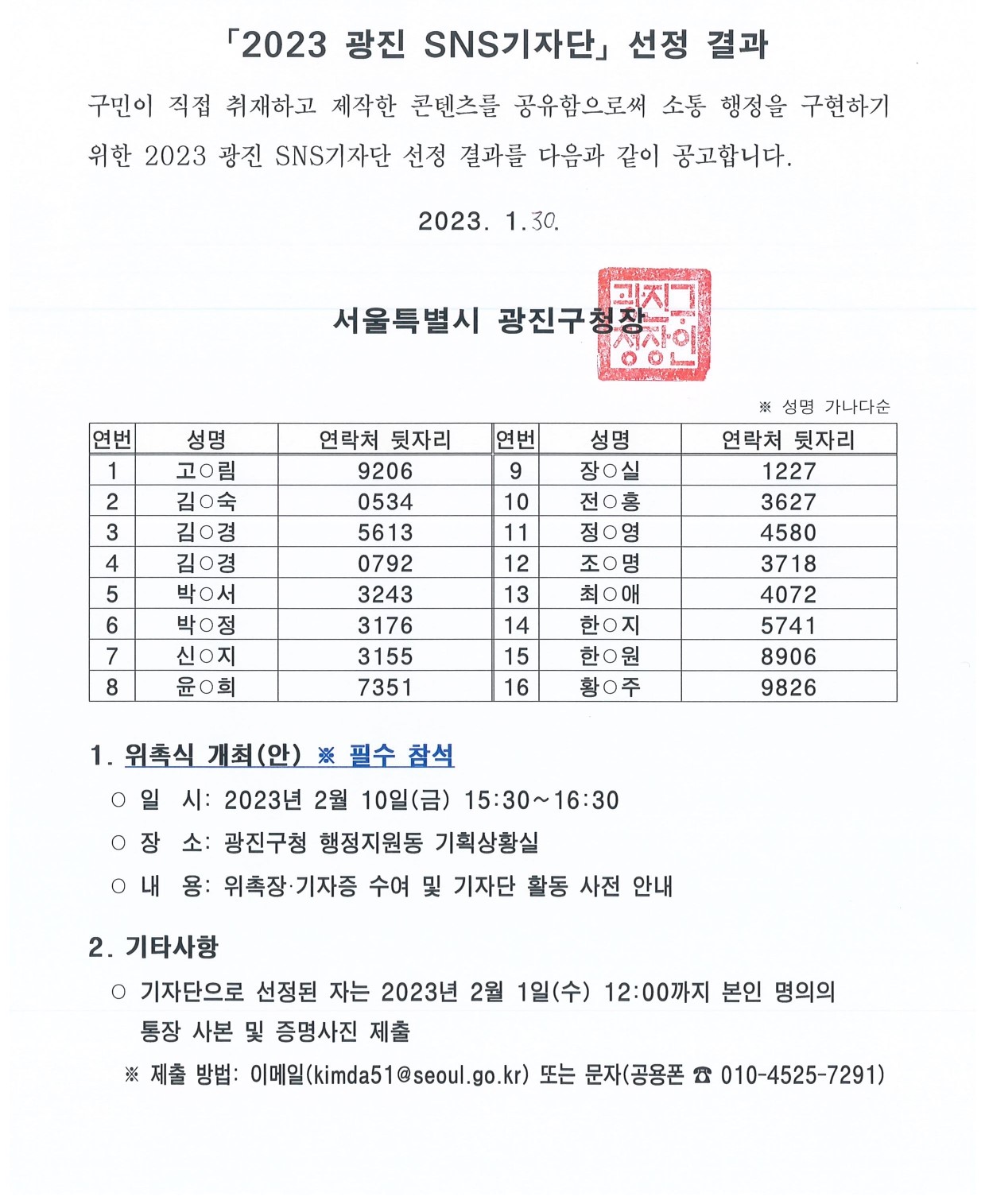 서울특별시 광진구 공고 제2023-113호