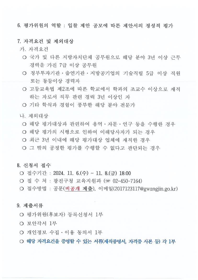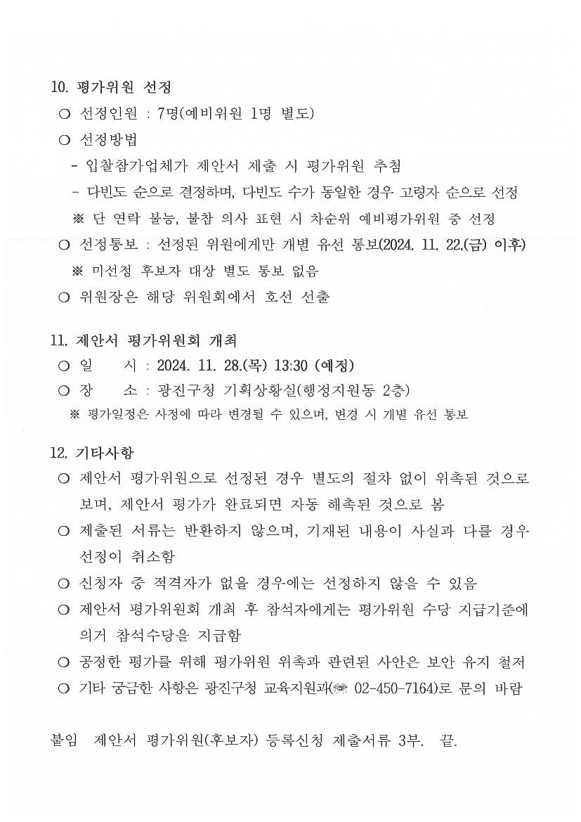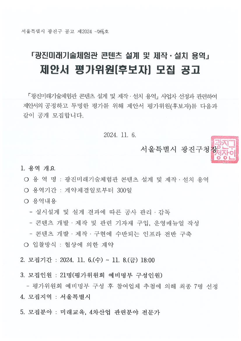 광진미래기술체험관 콘텐츠 설계 및 제작·설치 용역 제안서 평가위원(후보자) 모집 공고