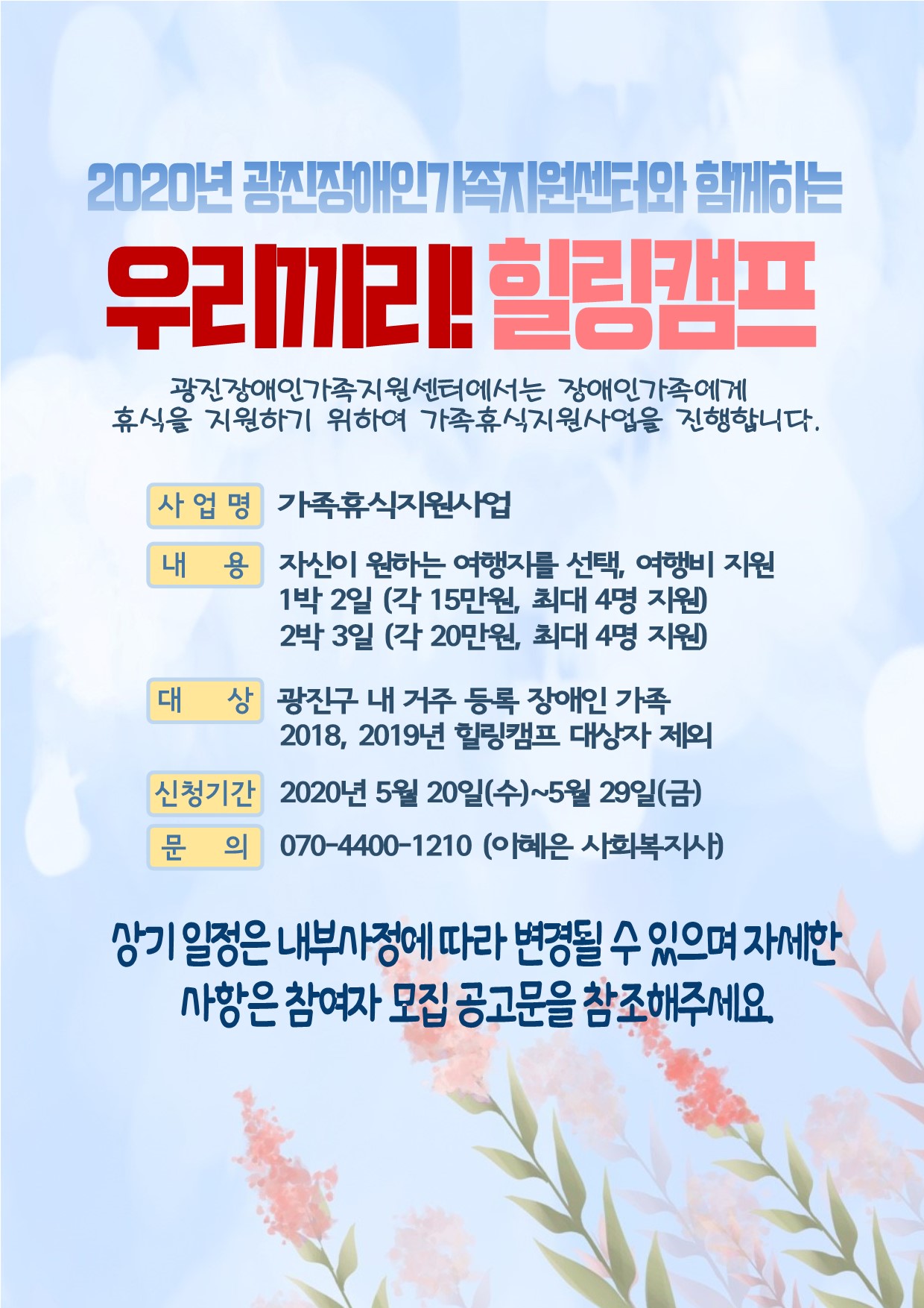 광진장애인가족지원센터 가족휴식지원사업 참여자 모집