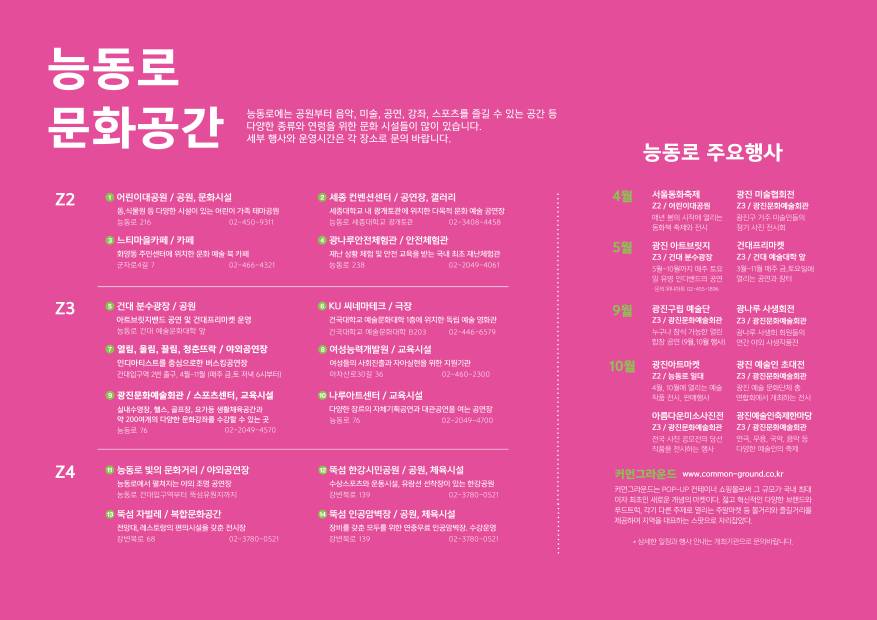다다양한 연령이 즐길 수 있는 문화시설이 가득한 능동로의 대표적 문화공간과 주요 문화행사 한눈에 보기