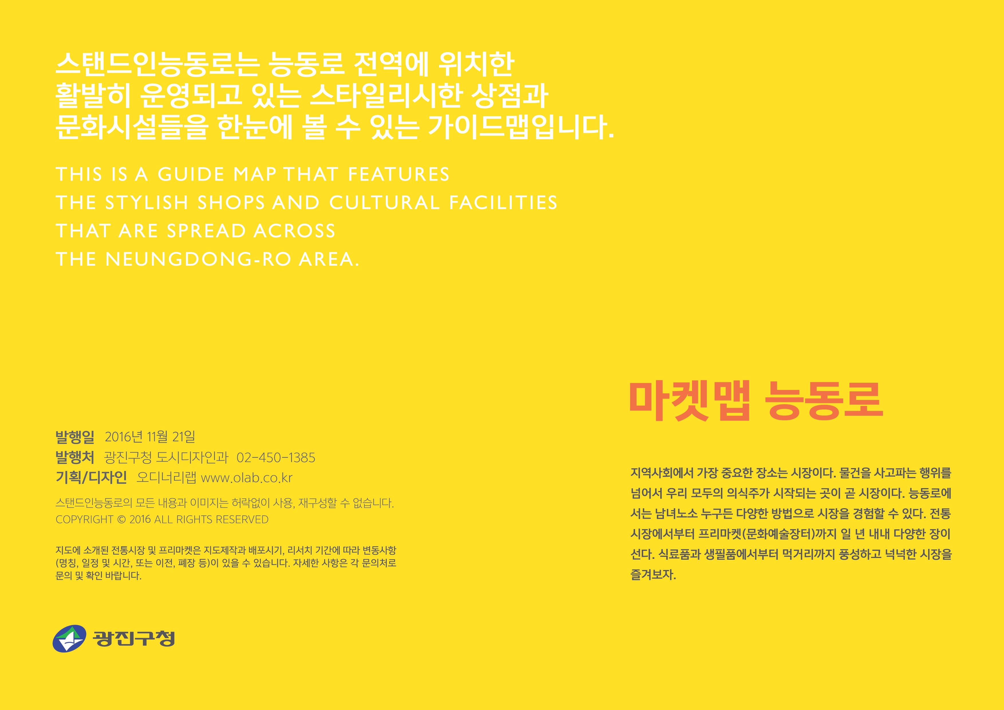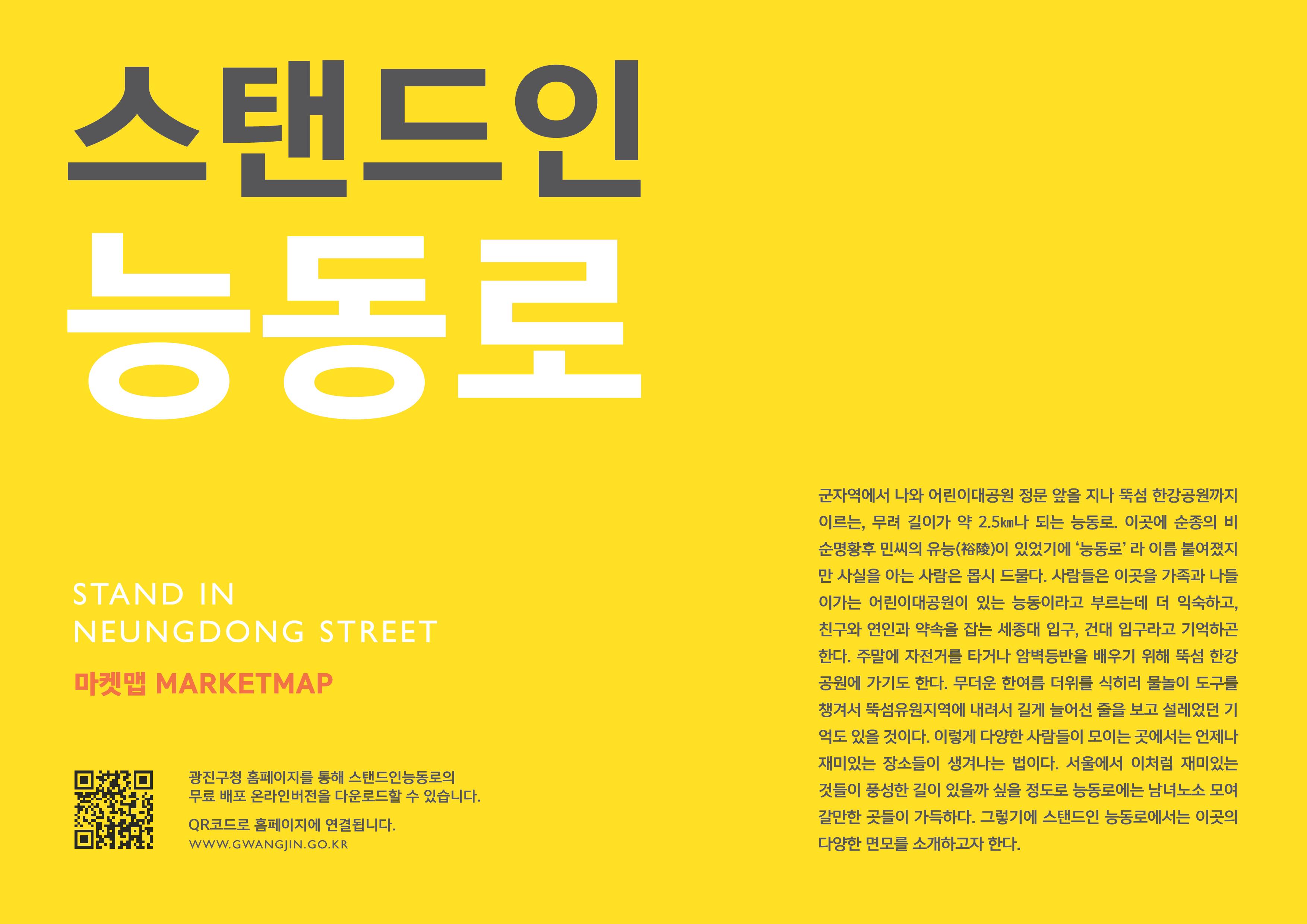- 사람이 모이는 곳에는 즐거움이 생긴다. 능동로에 줄지어 늘어선 상점들을 한눈에 보여주는 스탠드인능동로
