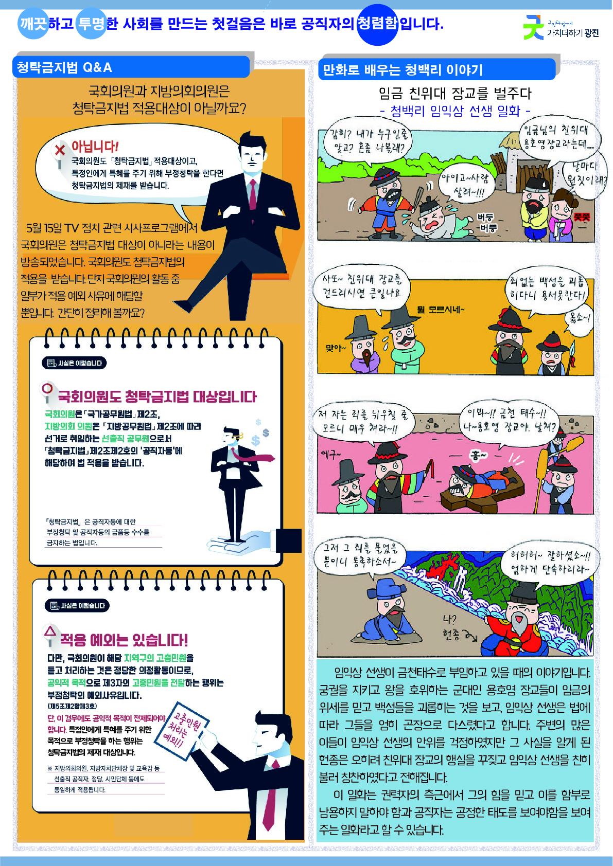 ○ 만화로 배우는 청렴이야기 : 임금 친위대 장교를 벌주다
