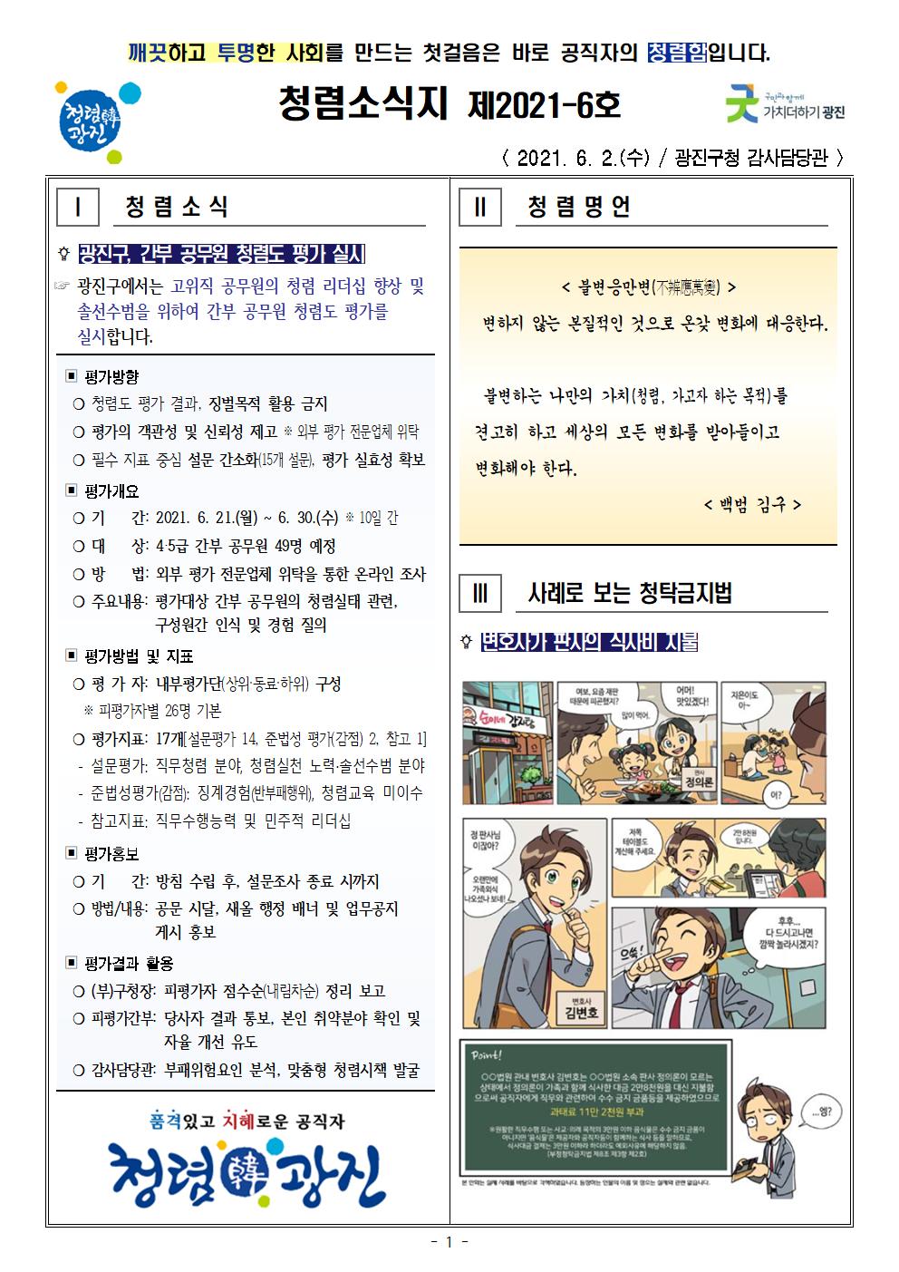청렴소식지 제2021-6호를 다음과 같이 발행합니다.