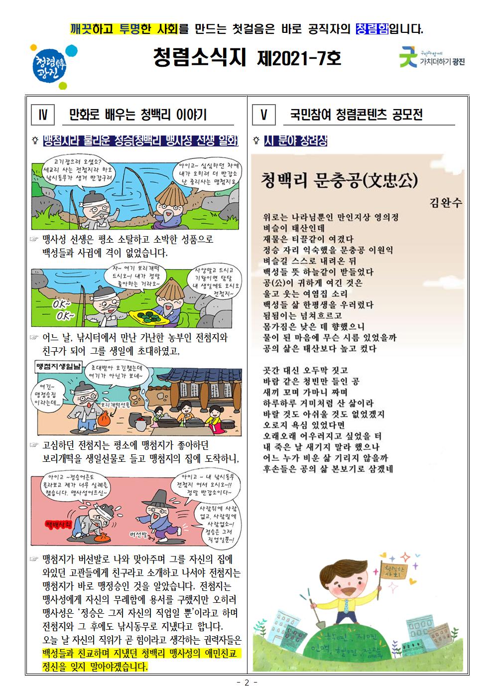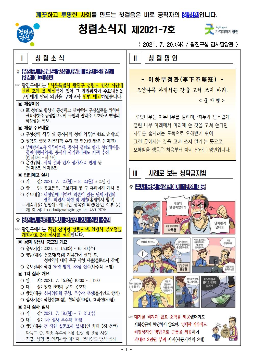 청렴소식지 제2021-7호를 다음과 같이 발행합니다.