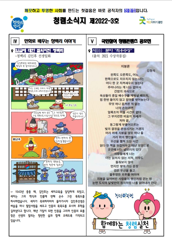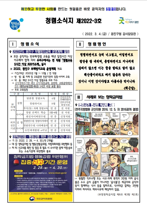 청렴소식지 제2022-3호를 아래와 같이 발행합니다.