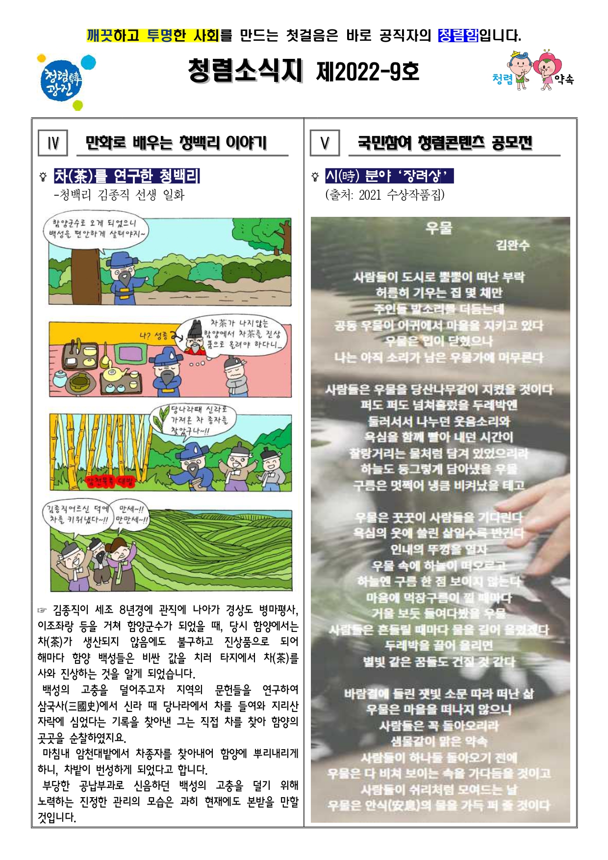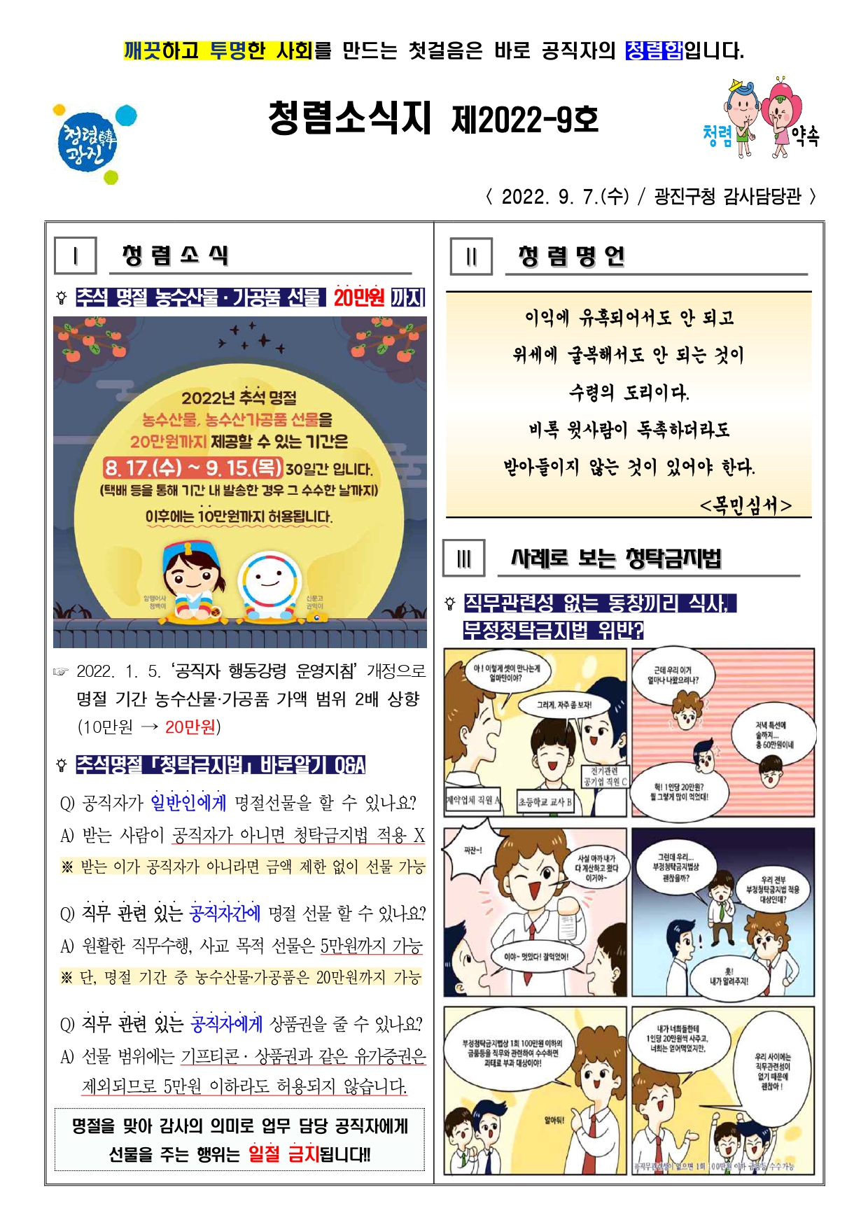 청렴소식지 제2022-9호를 아래와 같이 발행합니다.