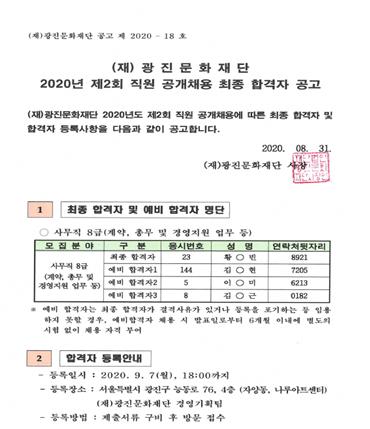 HOME > 광진소개 > 광진소식 > 채용정보 > 합격자공고