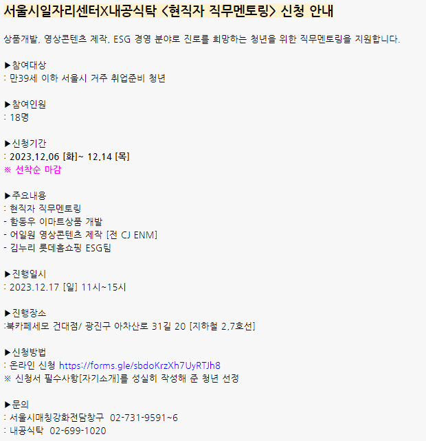 취업준비 청년을 위한 현직자 직무멘토링 (12.17 (11시) / 장소 : 북카페세모 건대점)