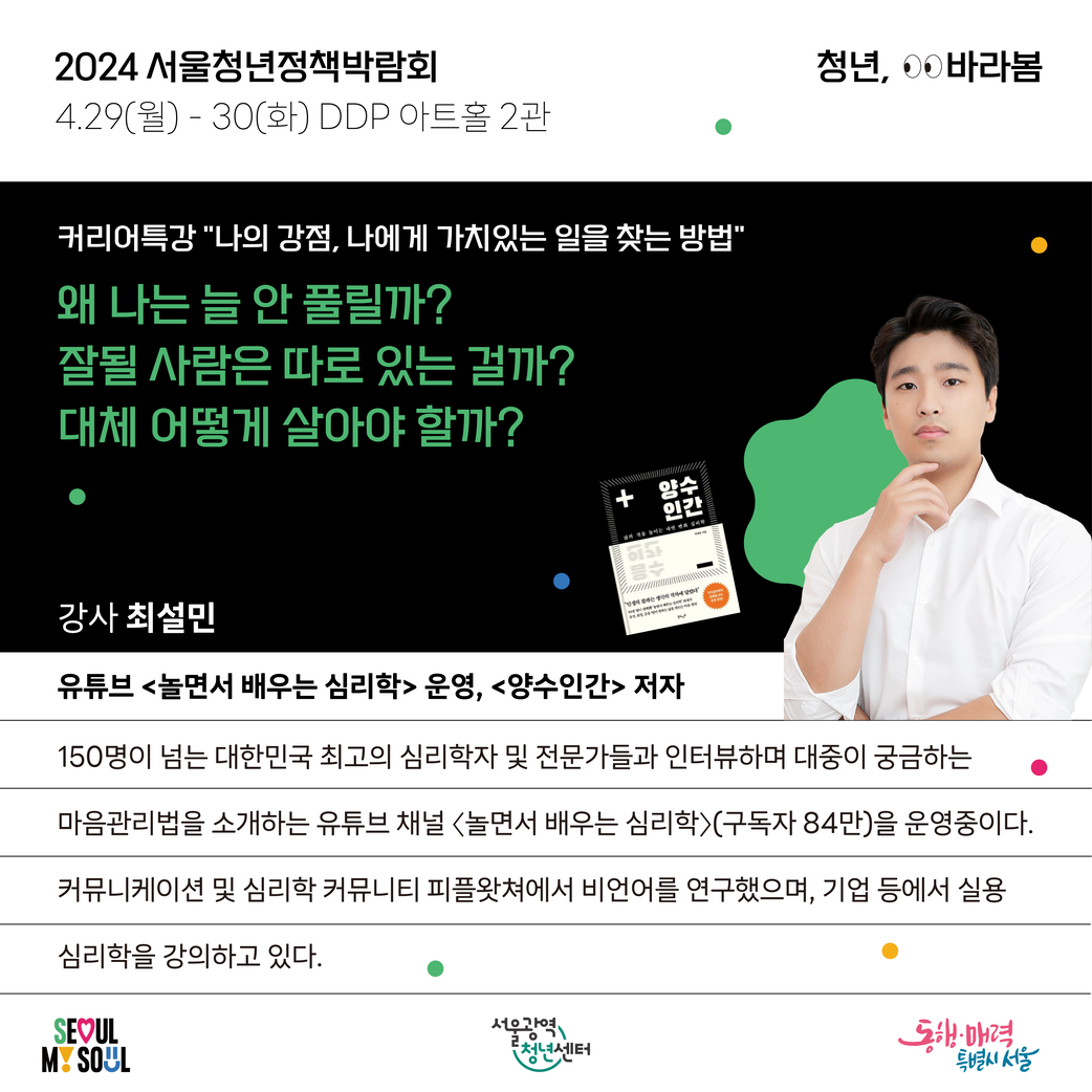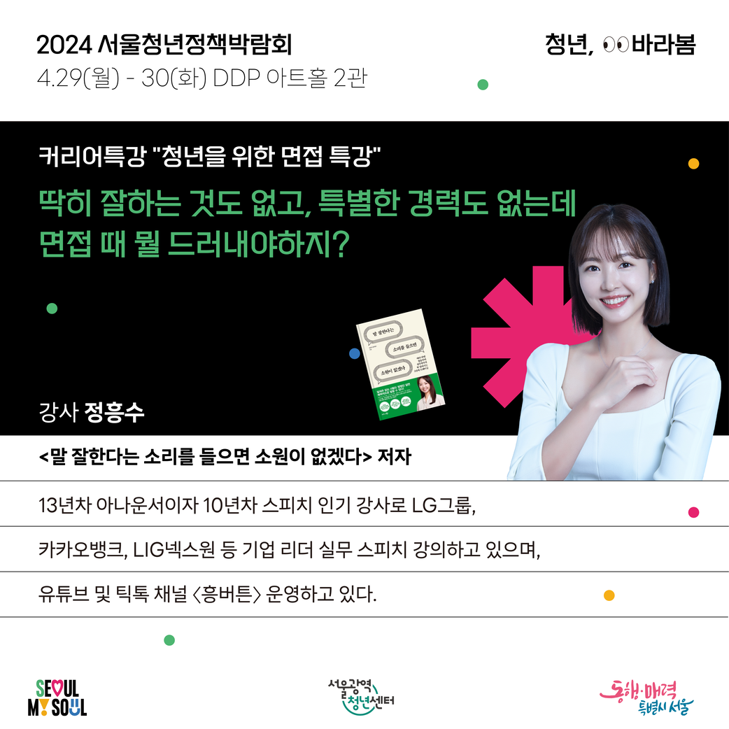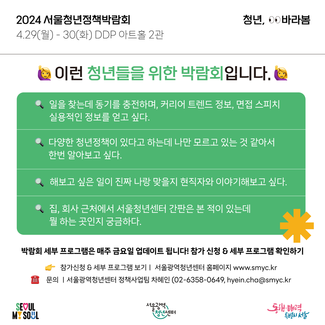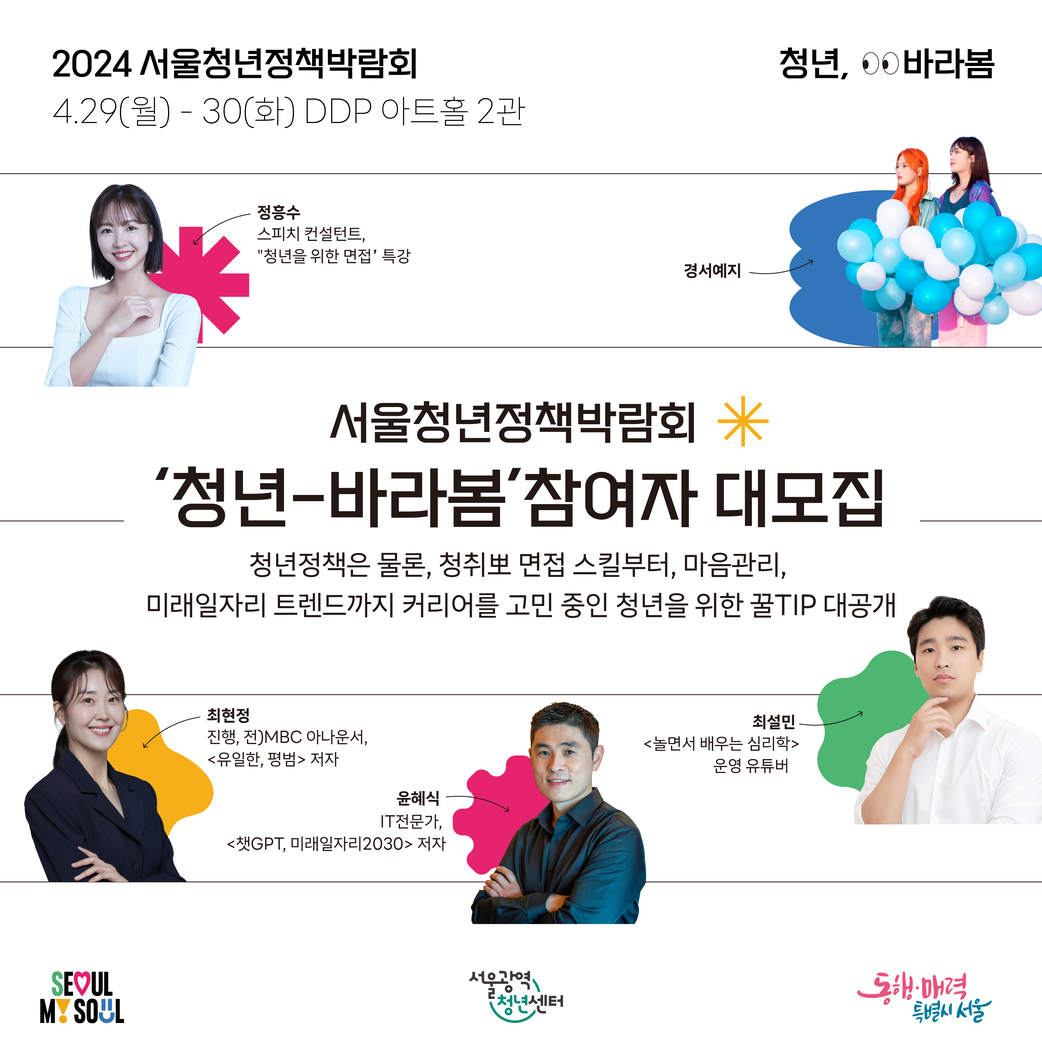 서울특별시와 서울광역청년센터가 2024 서울청년정책박람회 “청년, 바라봄”을 개최 합니다.