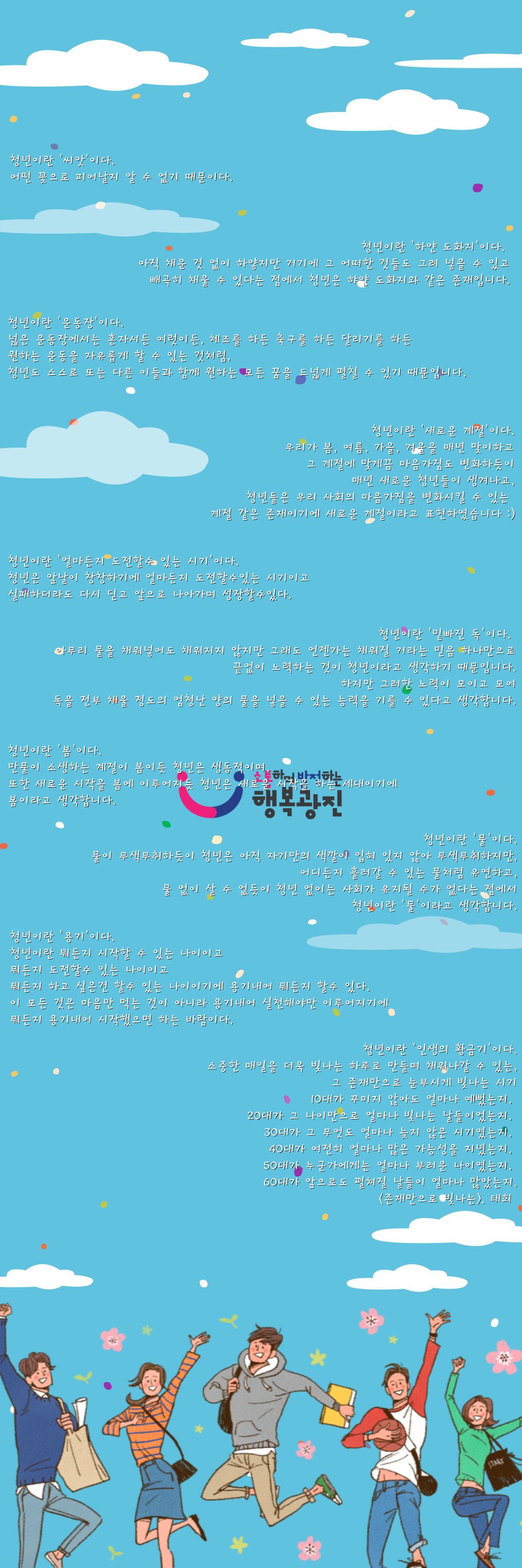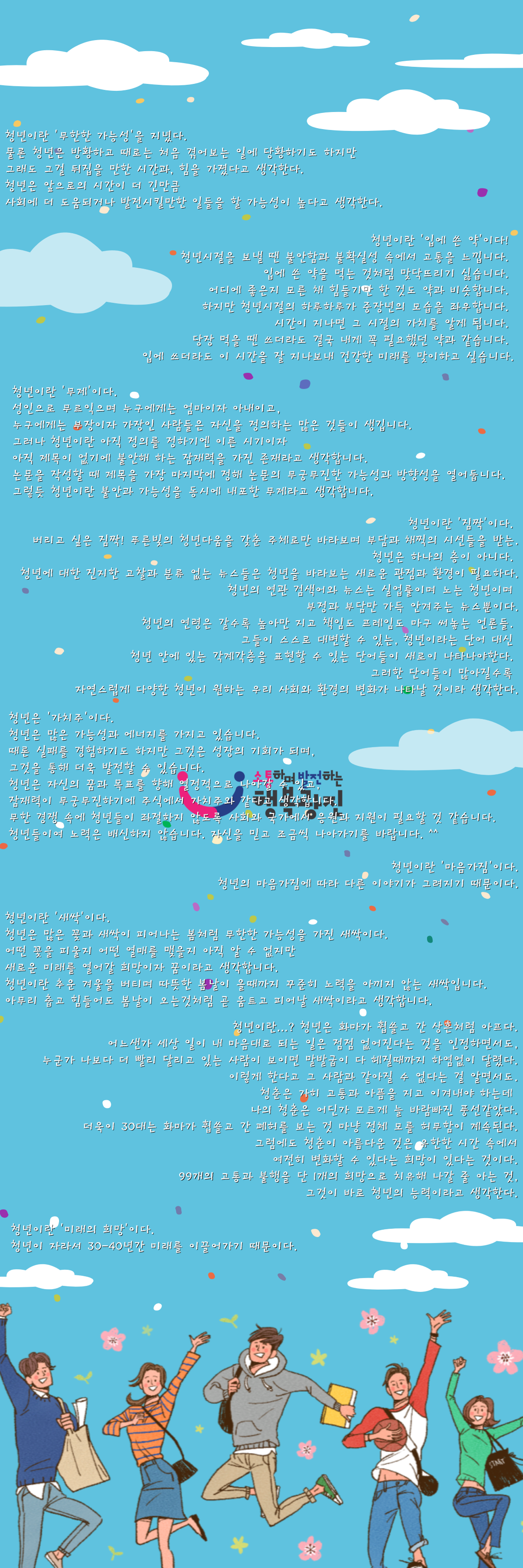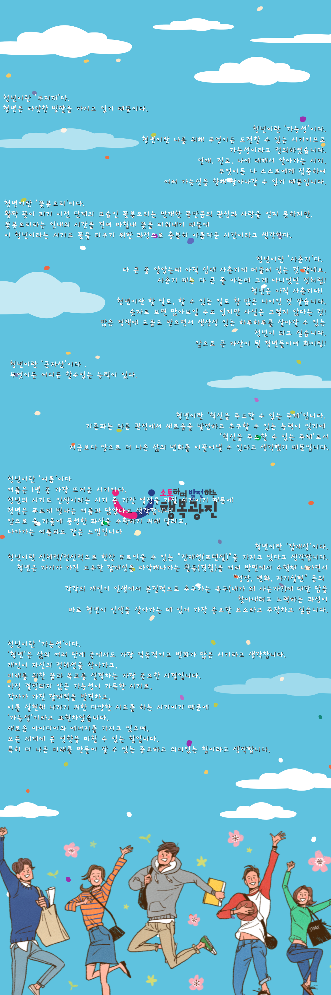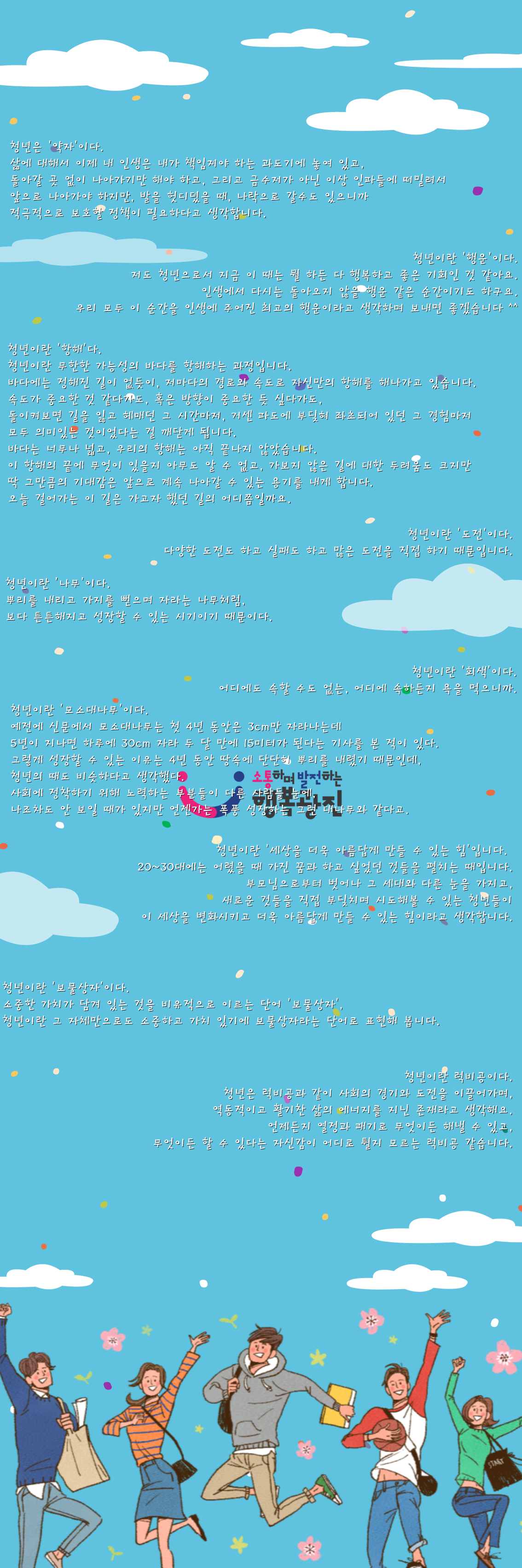 청년포털 청년톡톡(talktalk) 이벤트 2탄!! "청년이란..?" 이벤트에 참여한 청년들의 생각들을 공유합니다!