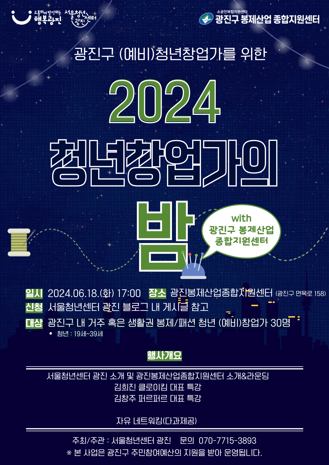 광진구 24년 제3회 청년창업가의 밤 (봉제 패션 분야 청년 (예비)창업가 모집합니다)