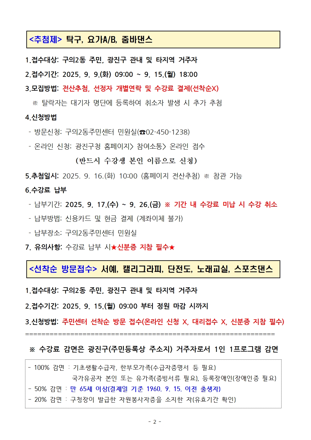 2025년 4분기 구의2동 자치회관 '요가B' 프로그램 수강생 모집 일정 및 방법 확인해주시기 바랍니다. 감사합니다.